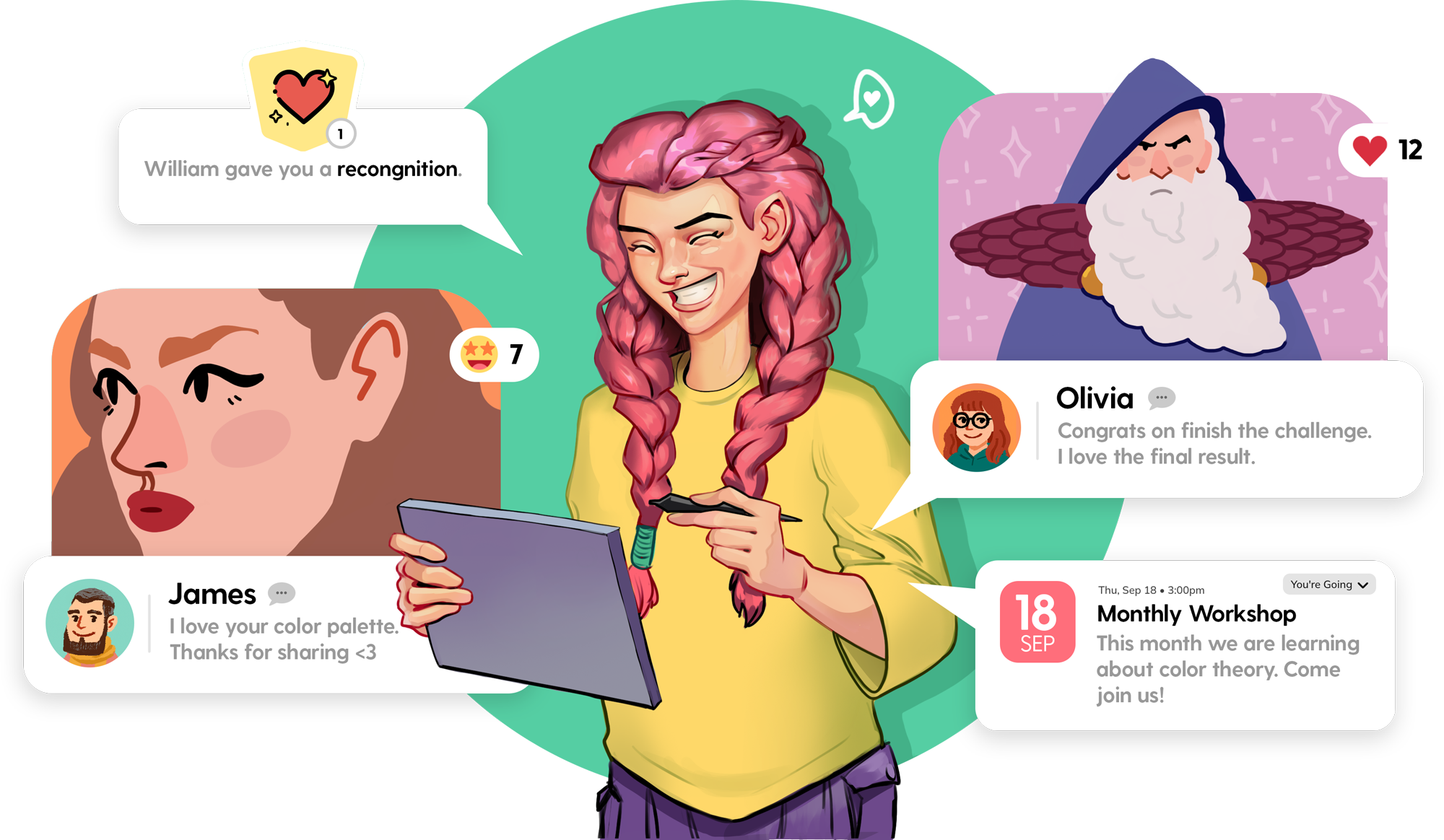 You’ll never be alone in your digital art journey. Inside the community, you’ll find encouragement, accountability, and answers to your questions from fellow artists—and direct guidance from a professional. In fact, David himself is in the community every day, ready to support you. 😊