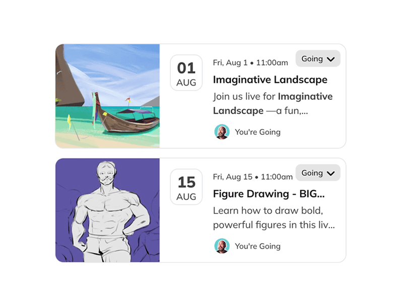 Step-by-step classes that guide you from fundamentals all the way to creating full illustrations from imagination.